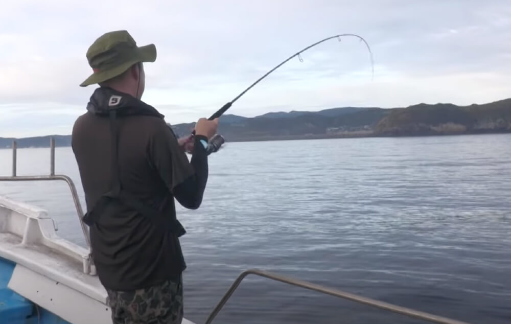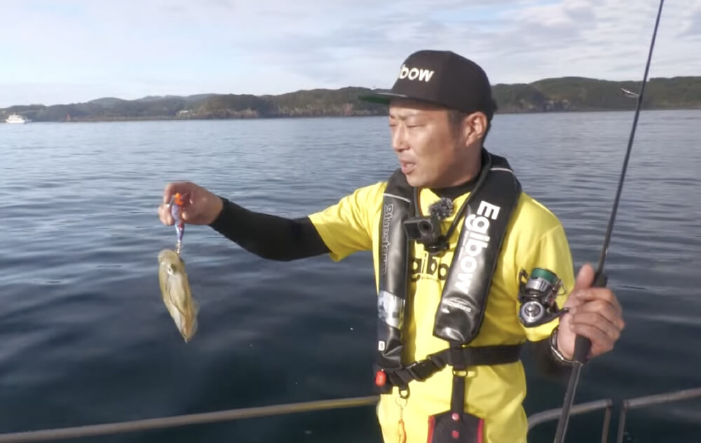 水深16mの最終ポイントに移動。潮の流れを見ながら真下のフレッシュなポイントを狙い、根気よく仕掛けを繰り返していきます。