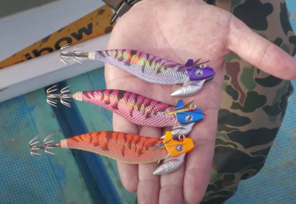 ブルー夜光→赤テープ→ケイムラと、陽照りや海の状況を確認しながら正確なエギのボディを選んでいきます。