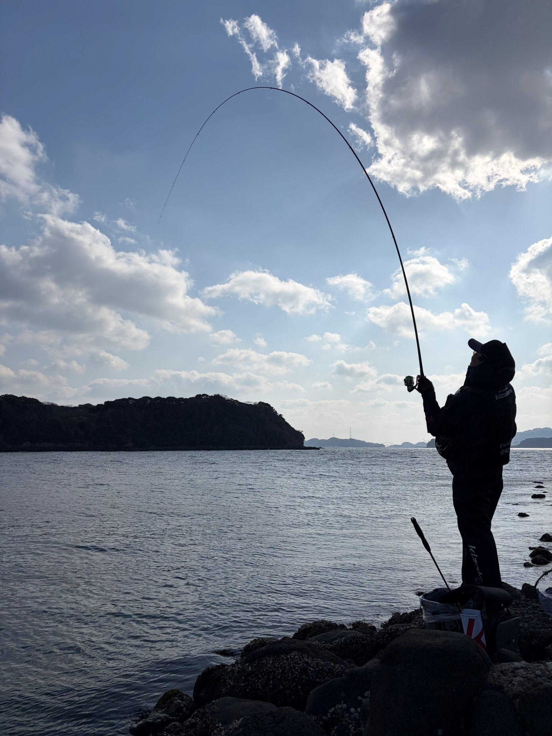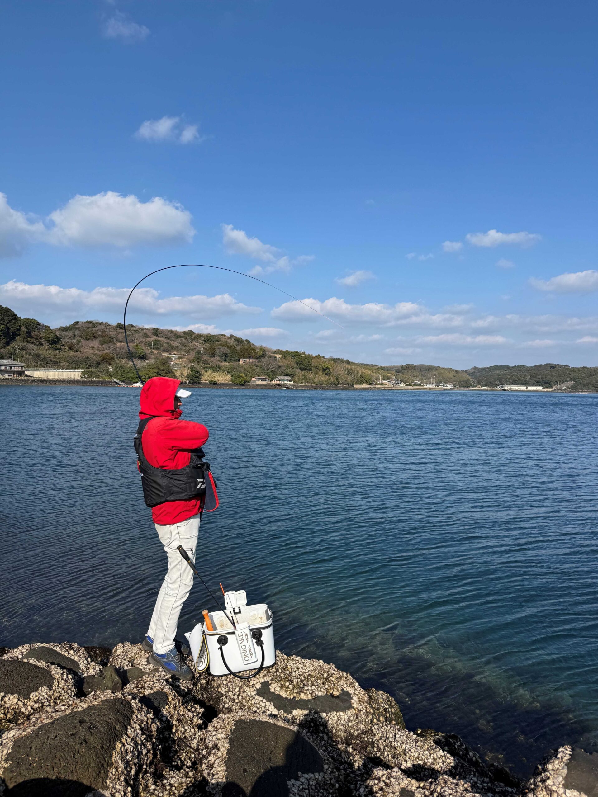 平山さんが竿を出すと、風がきつくなり「風ば連れてきたやろ~」と冗談も交えつつ、二人でのんびり楽しむことにした。